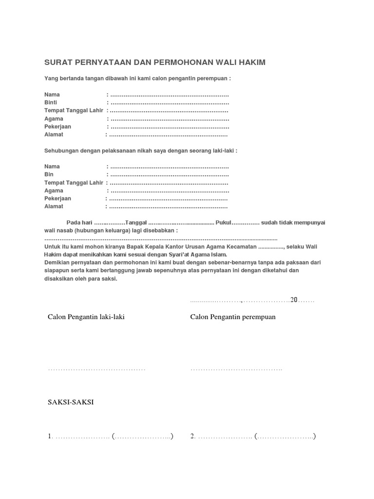 Surat Pernyataan Dan Permohonan Wali Hakim Pdf